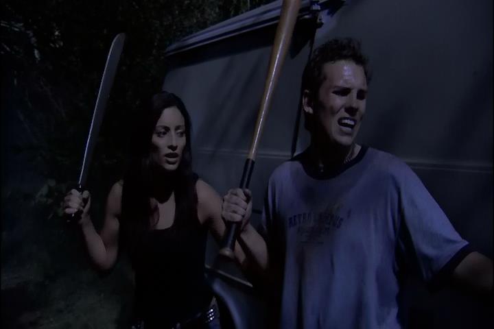 A group of teens at a camp partying. Some insane person out to kill them. Typical. Look at descriptions on line and you'll see few stars. What I will do is watch the film, get some caps of Erica Cerra, and then put down what I think about the film. We do find at least some of the group did in the past in accidentally setting fire to a house and killing three people who were trapped in it.