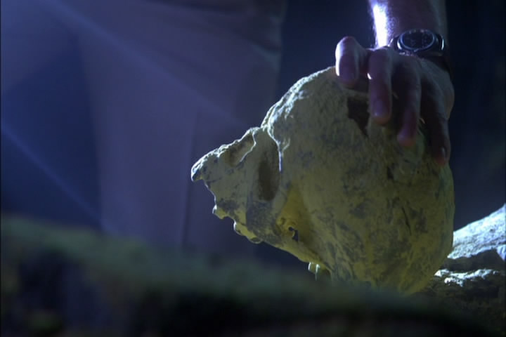 Carter finds a human skull in an offshoot of the tunnels below the city.