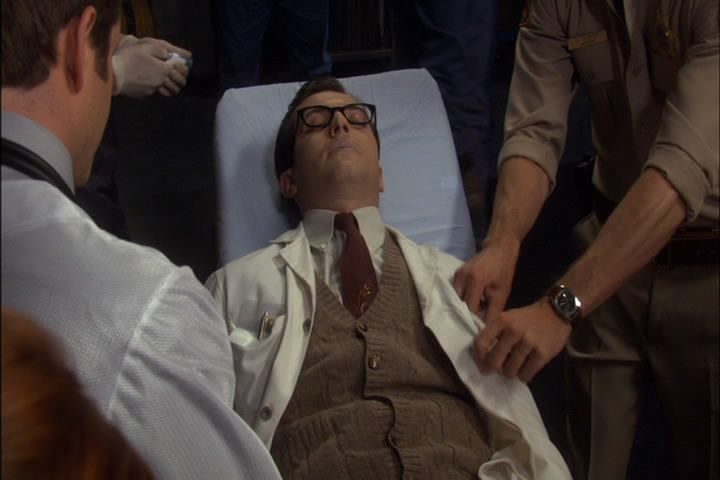 The two Fargos discuss a guy who the older Fargo claims stole all of his scientific developments. There's also a second plotline that Jo and Zoe and involved in, trying to find out who some woman is that Carter is getting flowers for.