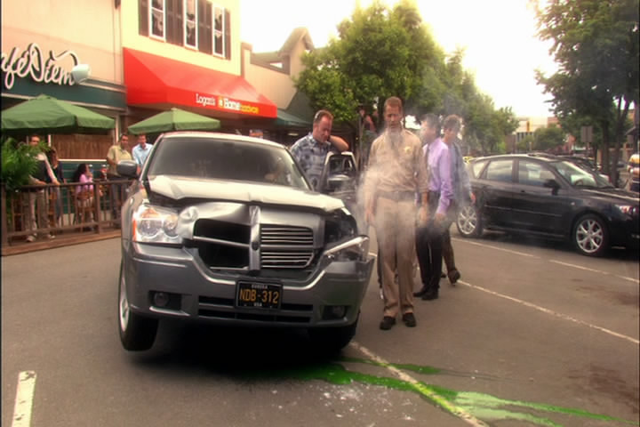 Then there's an accident in front of Cafe Diem. It turns out Zoey's car is now invisible and another car tried to get into that parking place. Henry tells Carter that invisibility is illegal so someone is breaking the law.