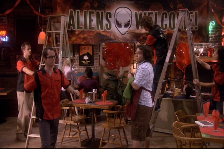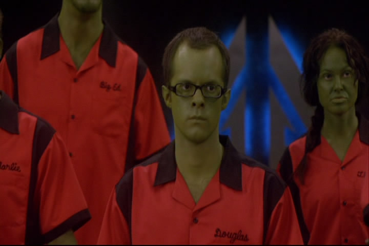 Eureka and Area 51 have a major bowling rivalry and cheating is considered fine. Things backfire and turn the entire Eureka team green. The 'signal from space' arc continues. In order to work on this certain power cells need to be gathered, but someone is stealing them. There's also a green blob that is out to get people.