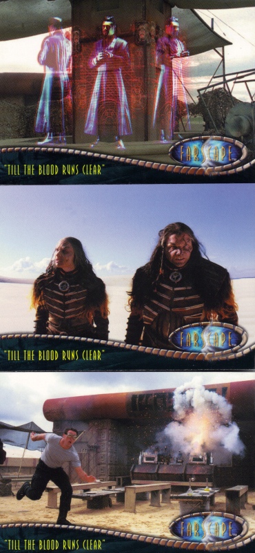 The find an abandoned Peacekeeper vehicle with a female Peacekeeper on board. Meanwhile scavengers attack, but one of them gets blown literally to pieces by Aeryn.
