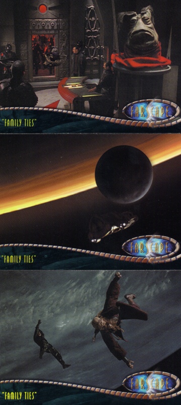 Rygel offers to sell out the group to Crais, but he's no longer in command of the ship (Scorpius is), and he asks to come on board Moya for asylum. Crais steals Moya's child, a spaceship with weapons. D'Argo and Crichton are left floating in space while Aeryn looks for them and Moya leaves.
