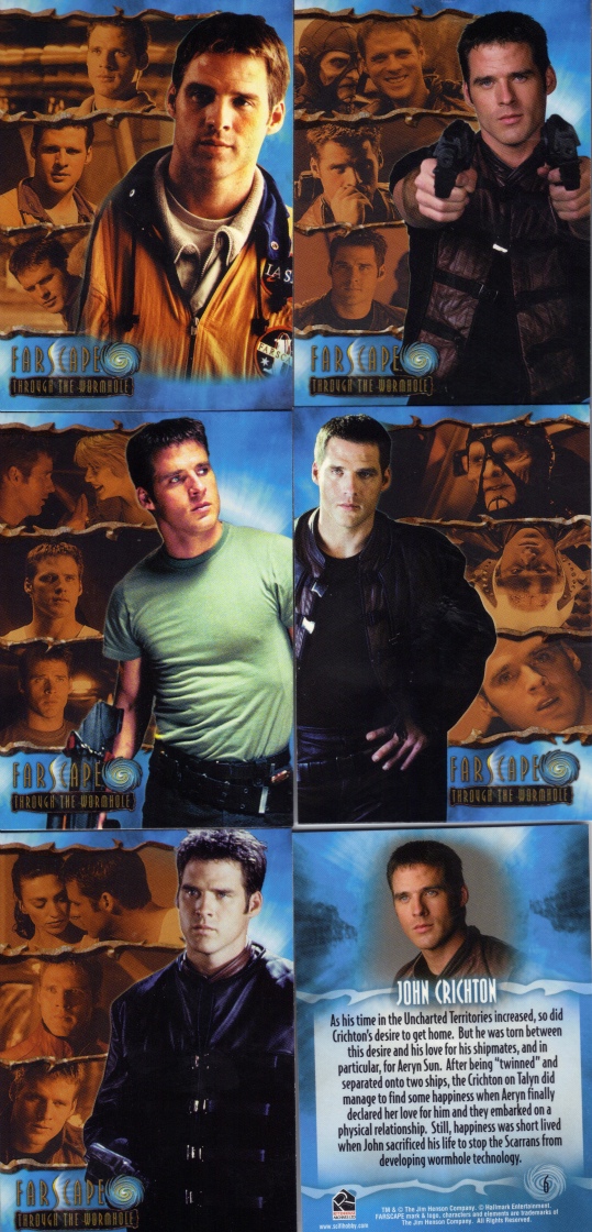 This scan shows the front of the first five cards, and the back of the sixth card. The backs of the cards have information on the characters. This set reveals that Aeryn died, killed by John/Scorpius.