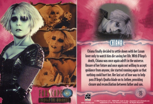 Chiana's life on Moya is covered, along with the real reason she struck up a sexual relationship with D'Argo's son.