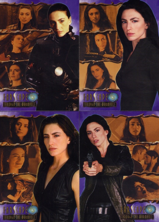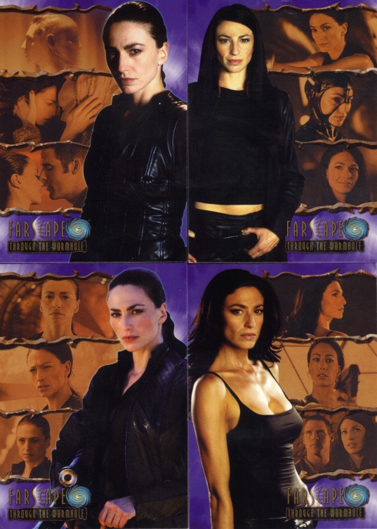 The first four cards of Aeryn Sun. They go into Aeryn's history with the Peacekeepers, how she left them, and how she found another type of family on Moya.