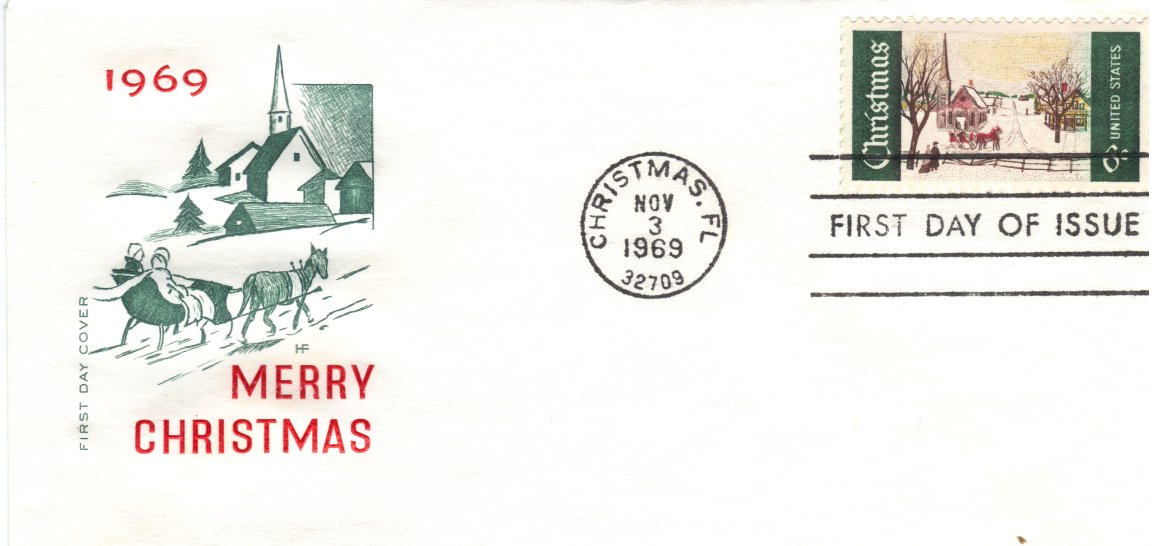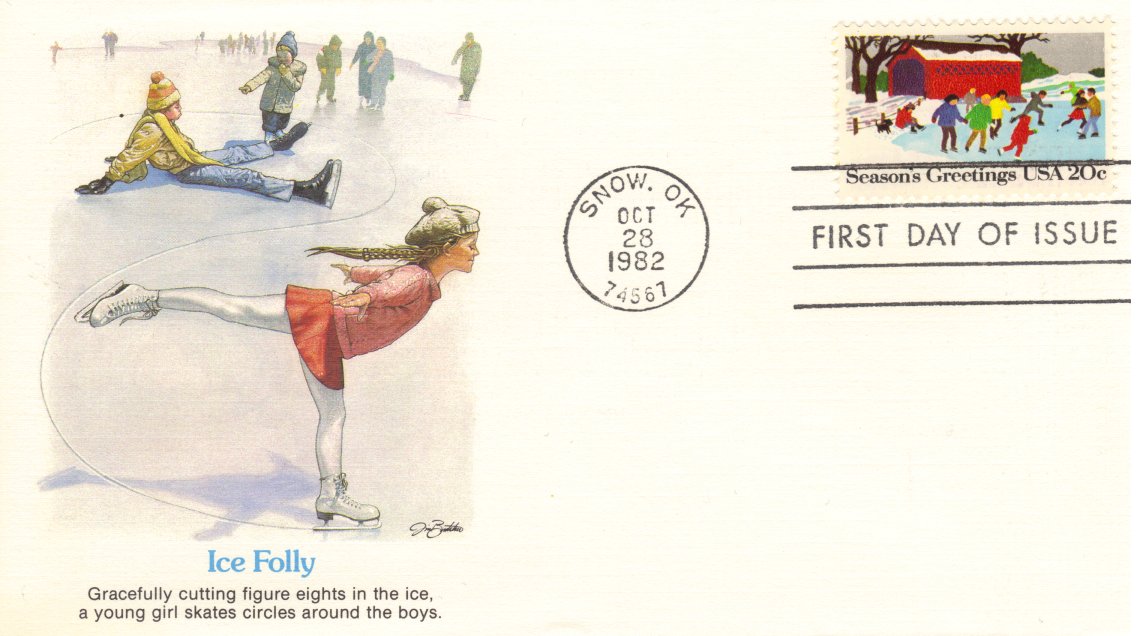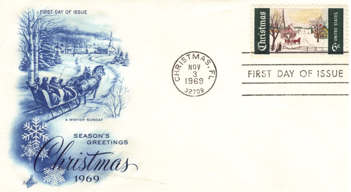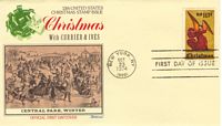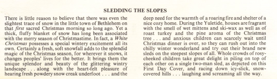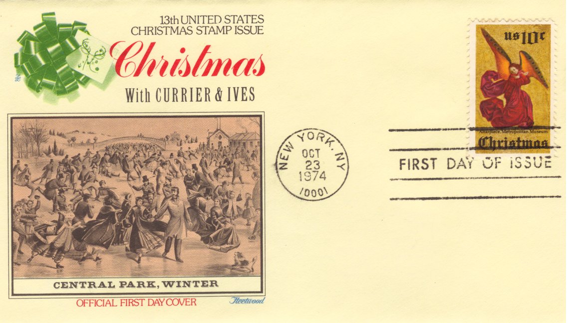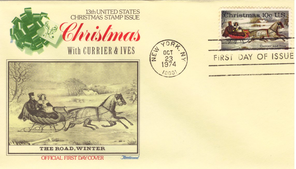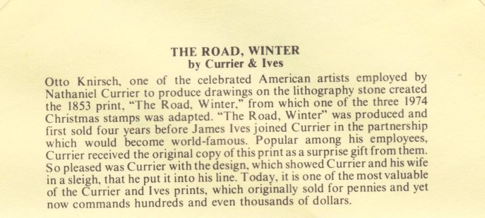 The Currier and Ives artwork automatically makes this look nice. The stamp is pretty. The back of the envelope also has information.