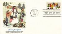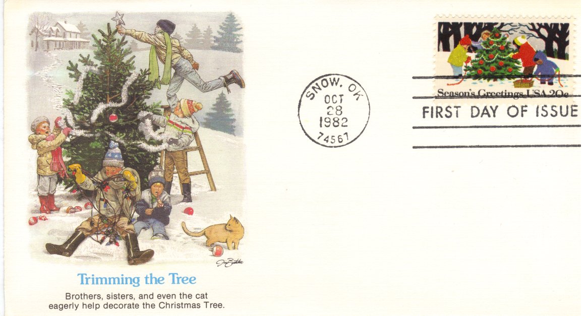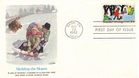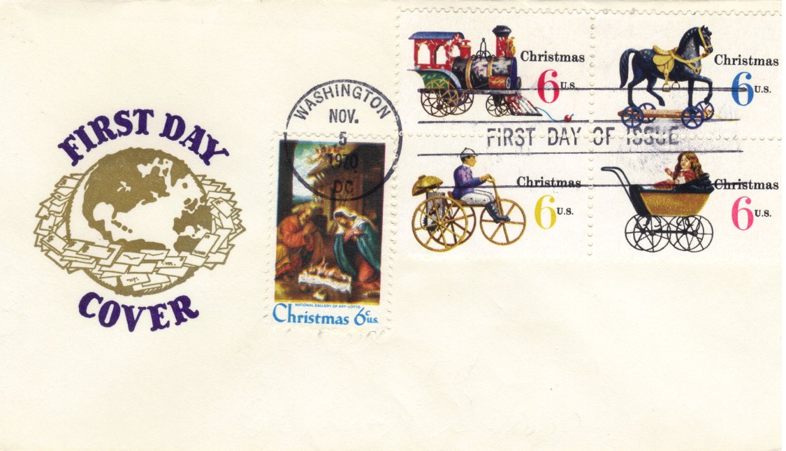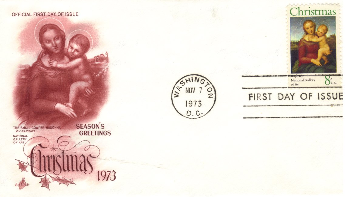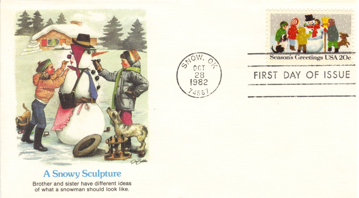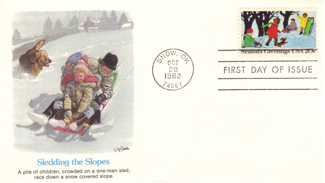 The Currier and Ives artwork automatically makes this look nice. The stamp is pretty. The back of the envelope also has information.