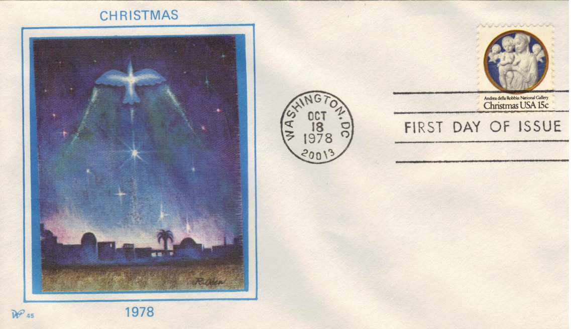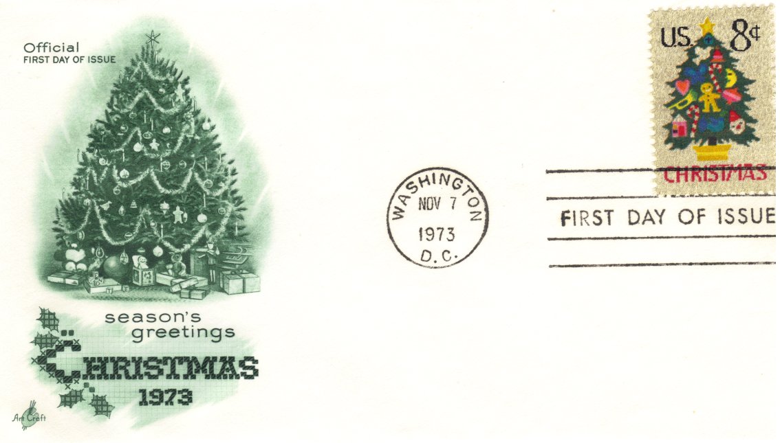 One further year and a more traditional cover. Again, I like the cachet and the artwork. There is no information on the other side of the envelope.