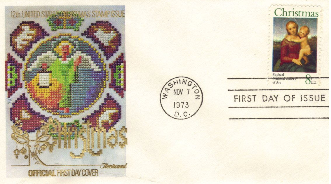 Four covers, all from 1973, using two different types of stamps. The first two covers I don't like since they look like something you've enlarged on your computer until it becomes all pixilated. The last two covers are more traditional and look fine.
