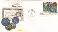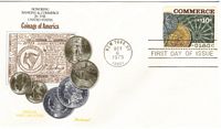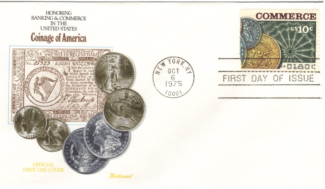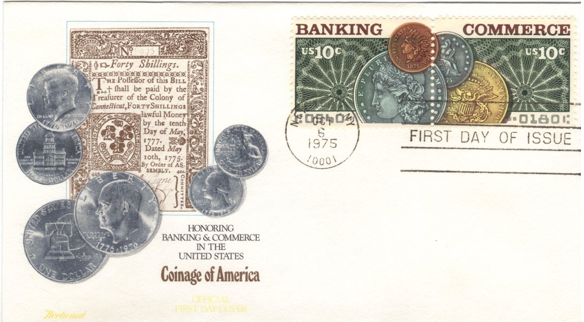 I have three of these. Each one comes with some information on the back. It looks like there were two stamps in the series, one labeled Banking and one labeled Commerce. The covers are dated October 6, 1975.