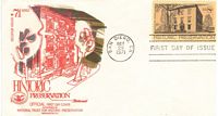 The cachets on these are well drawn. There is a problem, though, with the information contained on the back of the envelope. It looks like it was printed when the ink was running out or something as the type is very light and difficult to read. I sort of like the stamps but I think if they had been done in color they would have looked better.