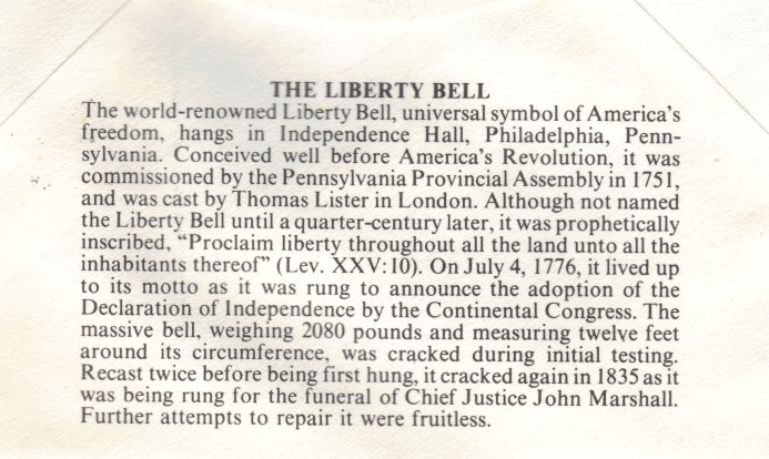I have four different FDCs I've put into this set. Two of them seem to belong to other series, but since they all dealt with the Liberty Bell I decided to put them together.