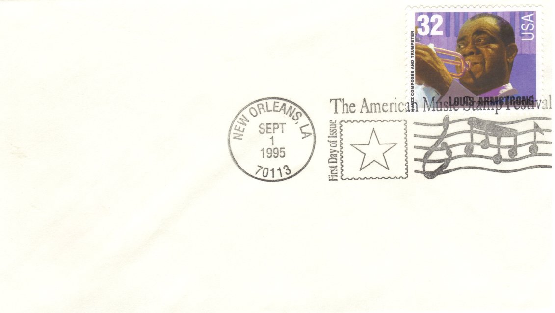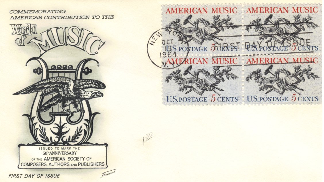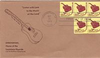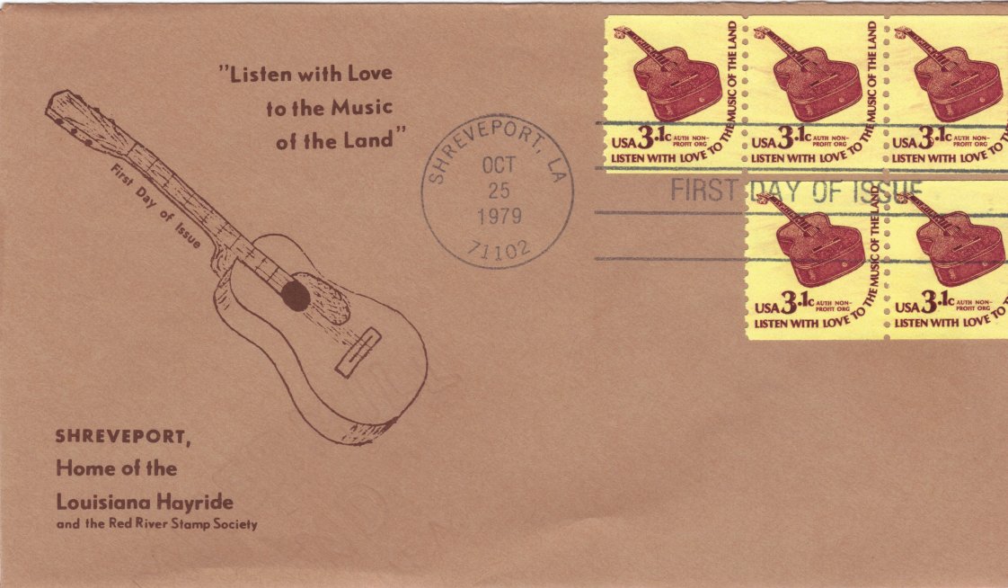 Oct. 25, 1979. Brown envelope with cachet of a guitar.
