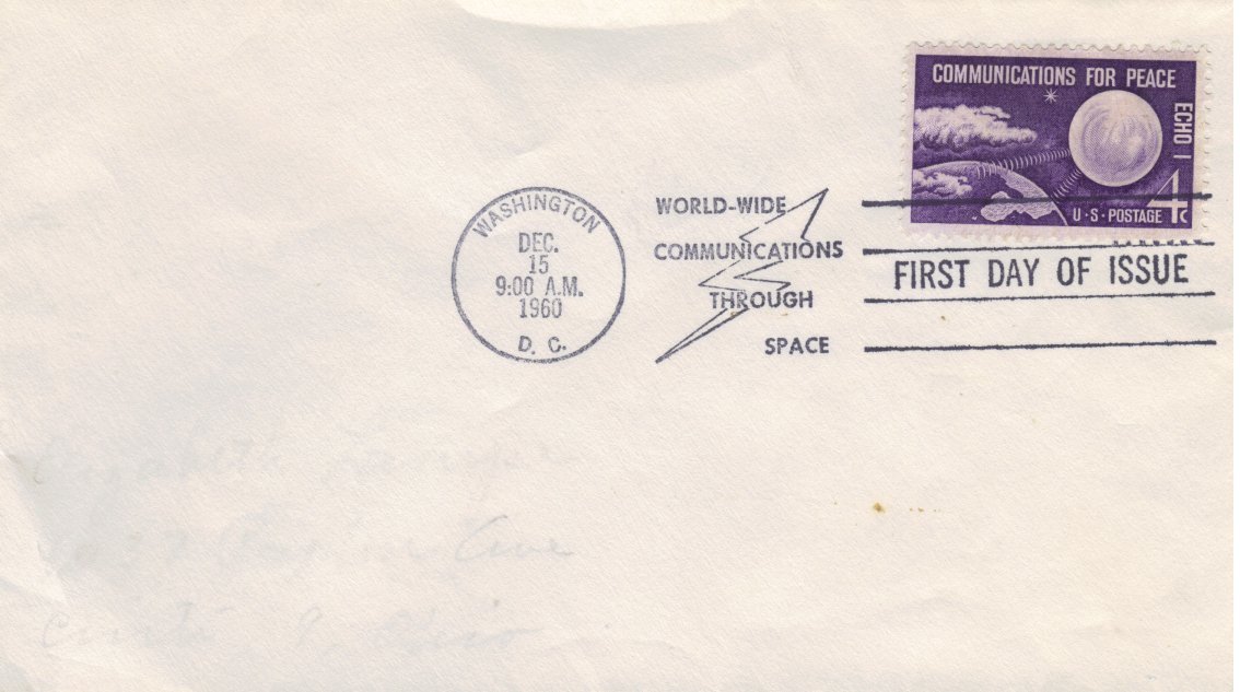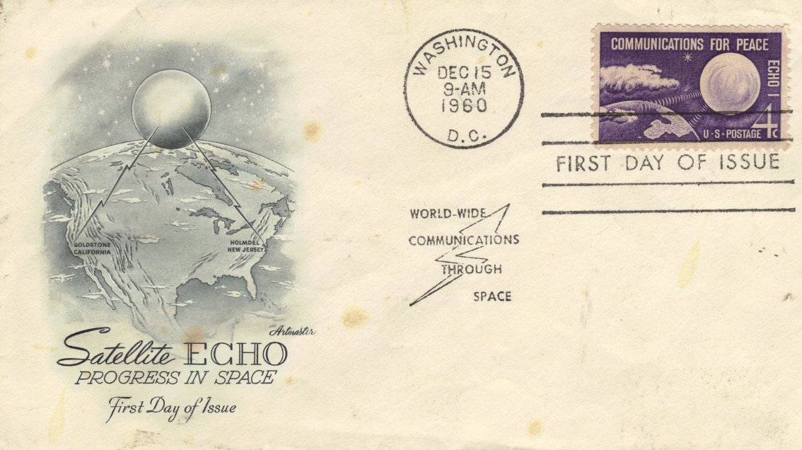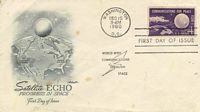 The first envelope has no cachet while the second one does. Echo I was a huge balloon that had been put into orbit in an attempt to see if signals could be bounced off of it. It was so big and so reflective it was easy to stand out at night and see it pass over.