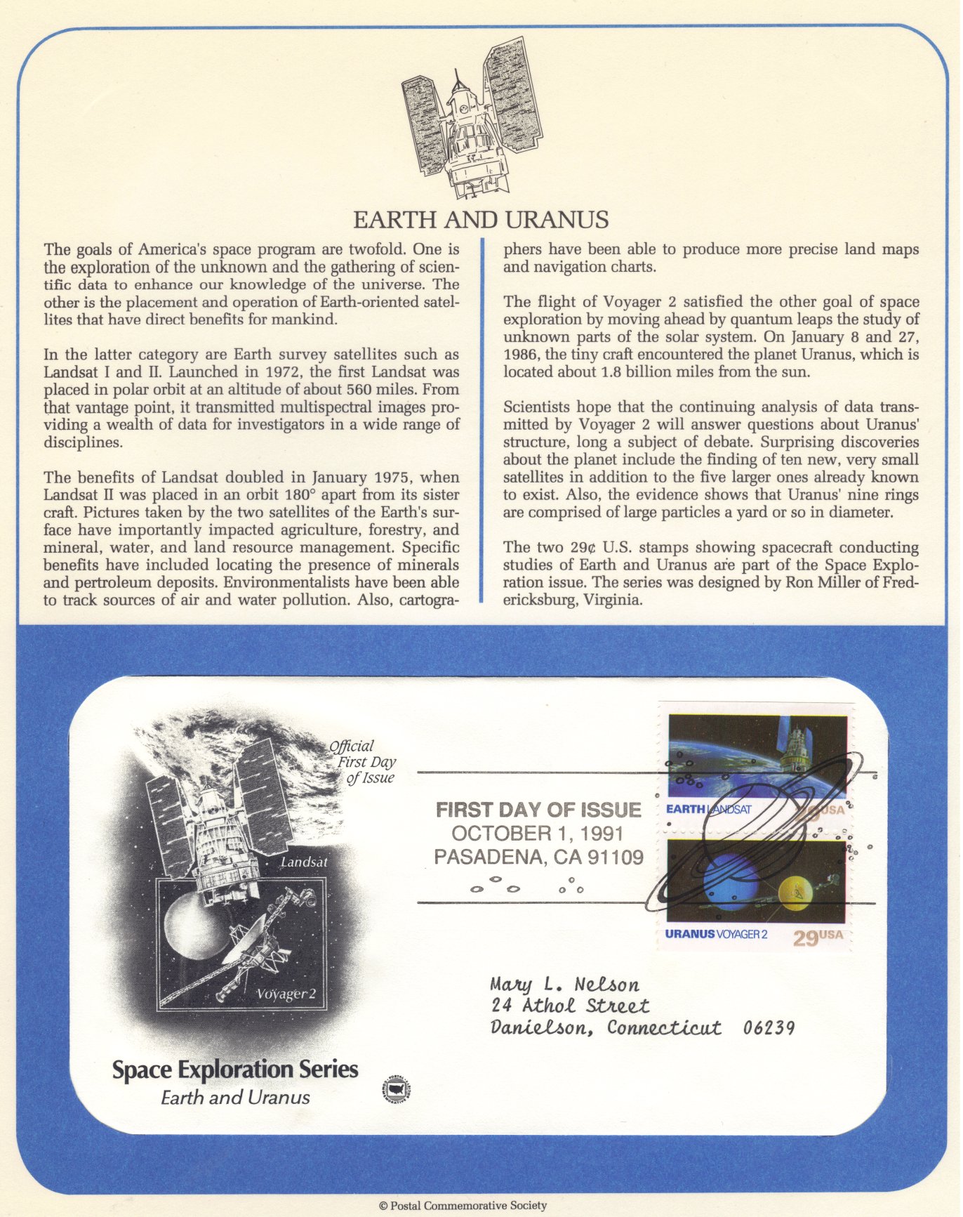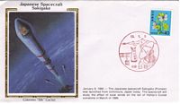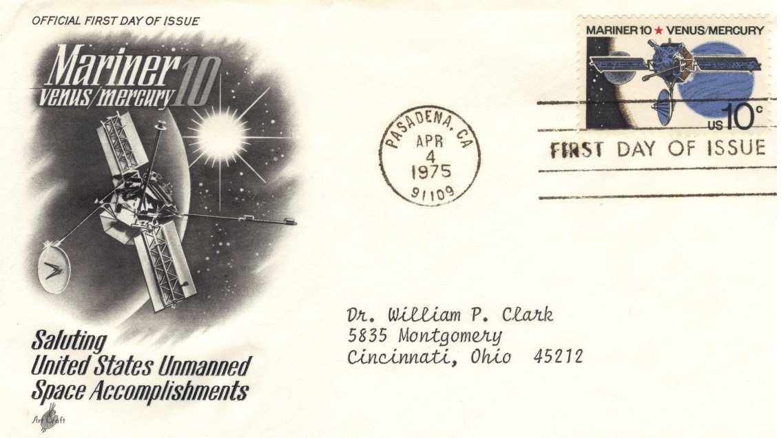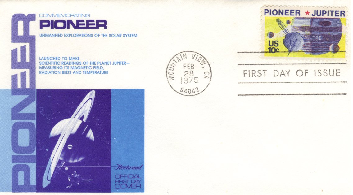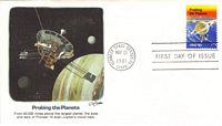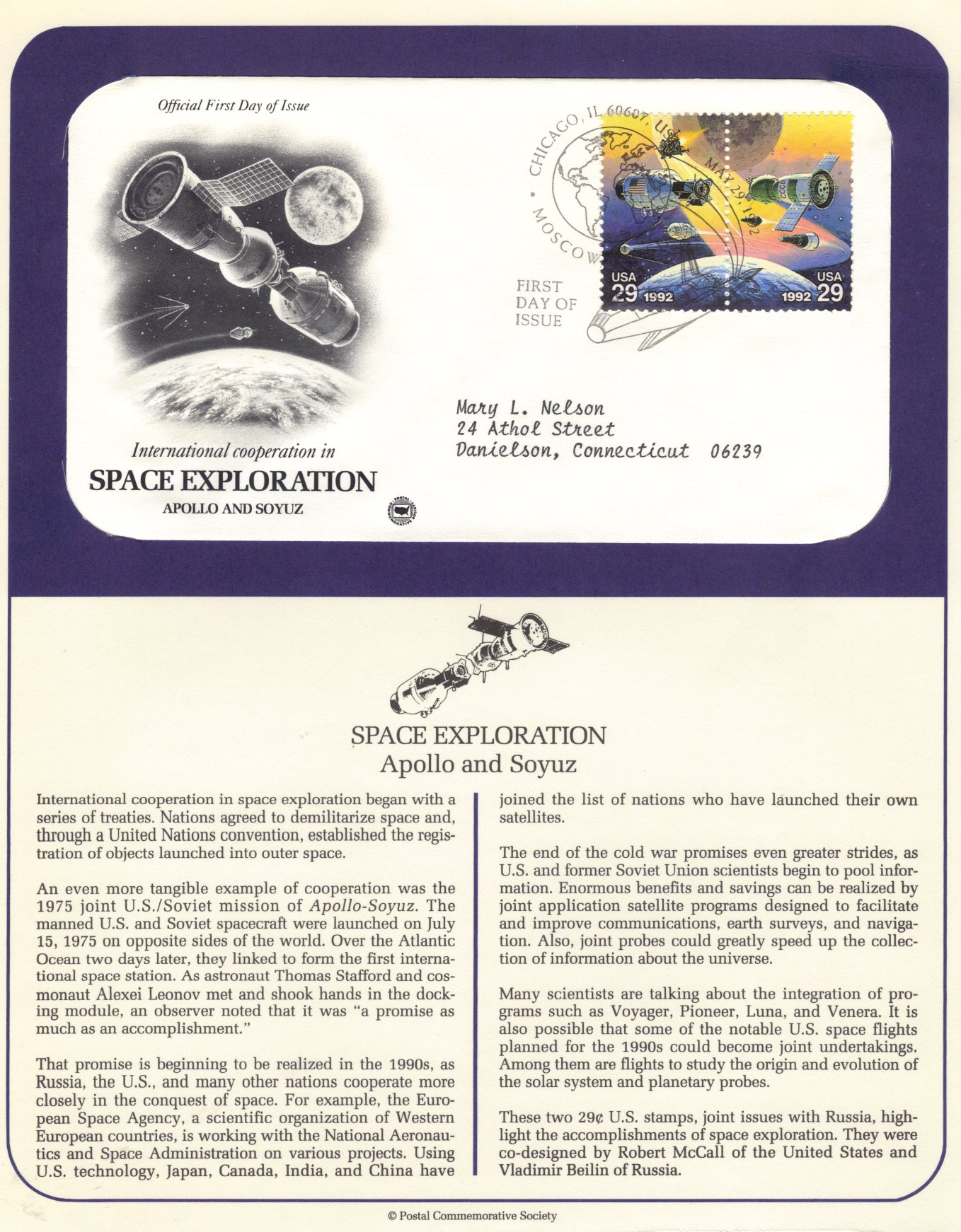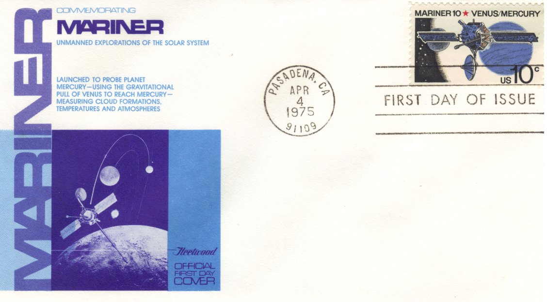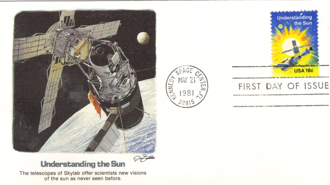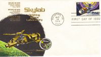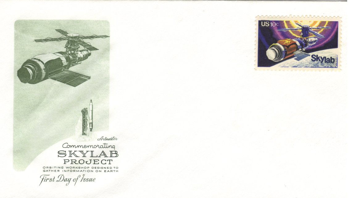 The same stamp, but this one has been canceled and has the date of 1974. This was an American orbiting satellite that was manned.