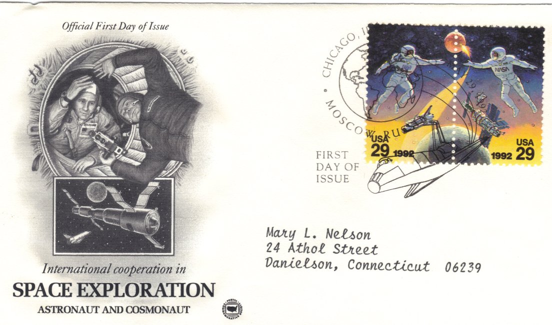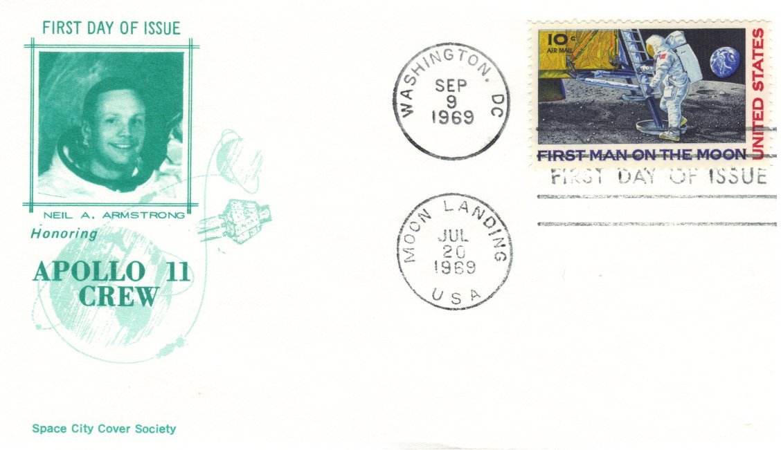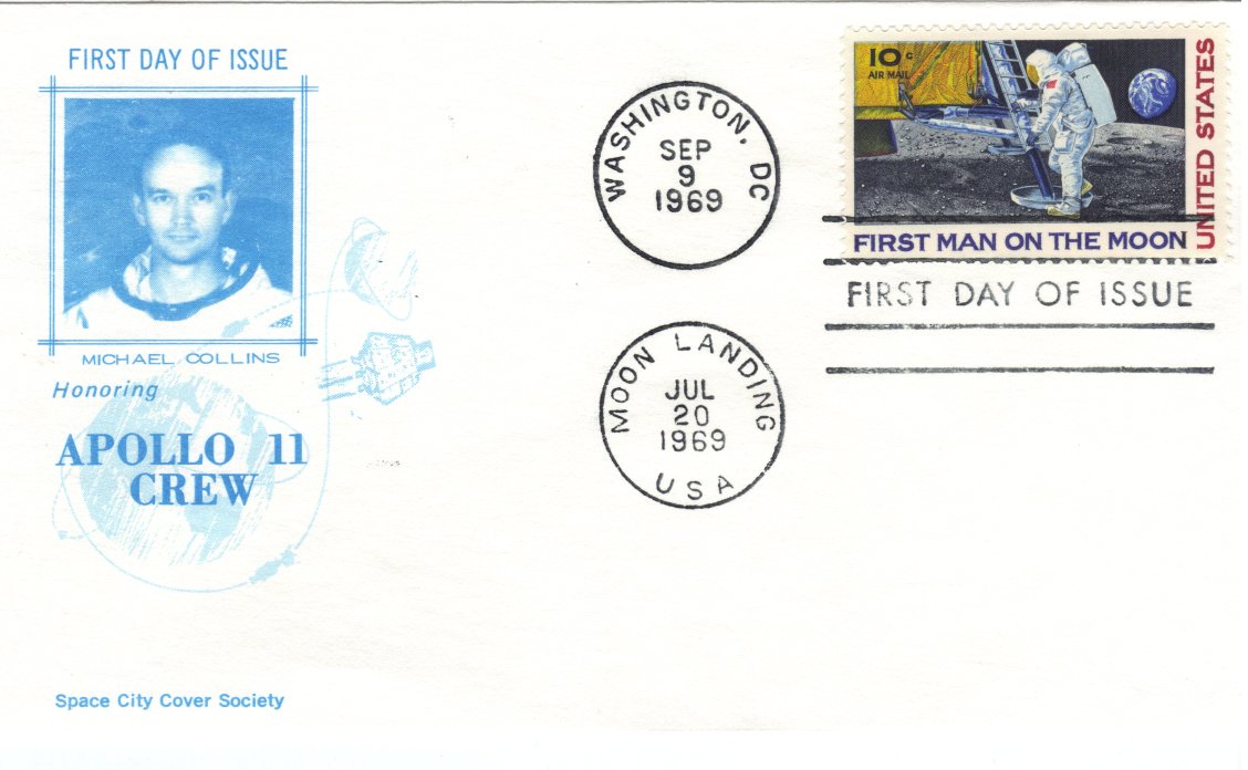 Four different First Day Covers from the same year. The first has traditional artwork; the second has a fancier cachet, I would say. The last two are two of the astronauts on the mission. I don't have the third astronaut yet, though.