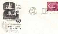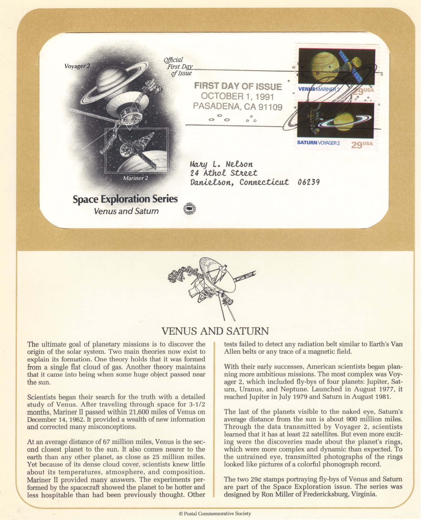 Two totally different cachets for the same stamp. The first one has more traditional artwork. The second cover includes information on the other side of the envelope.
