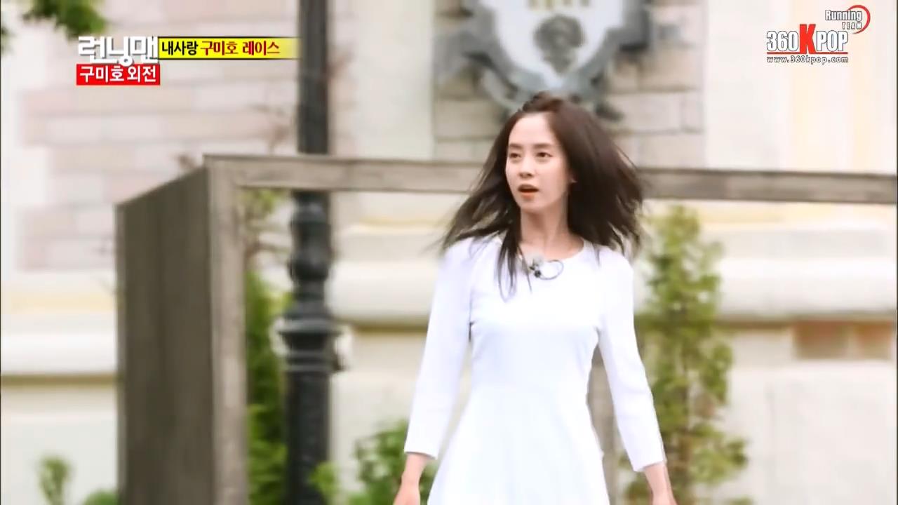 Song Ji-Hyo is a member of the Running Man group and is also an accomplished actress. She is a tomboy character, able to keep up with the guys on the show on just about anything (except reaching something high up, that is) and at the same time she can get dressed up and shows how beautiful and elegant she can be. She'll take on about any task including bungee-jumping from a very high building.