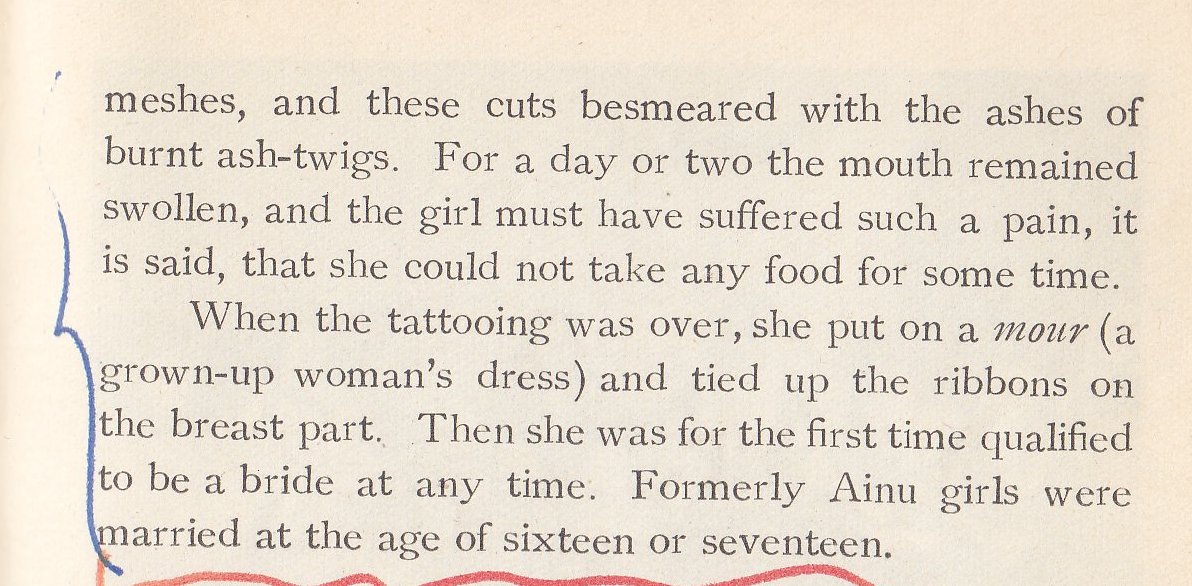 The three kinds of Ainu. Note; the red marking was done by someone else.