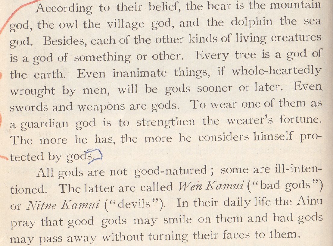 It would be interesting to know if this was the traditional belief of the Ainu, or if it was an import from the Japanese since it seems the Ainu have pretty much the same view of kami as do the Japanese.