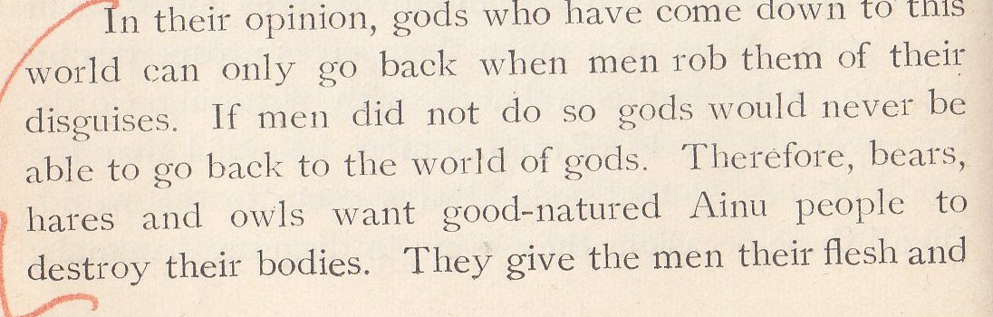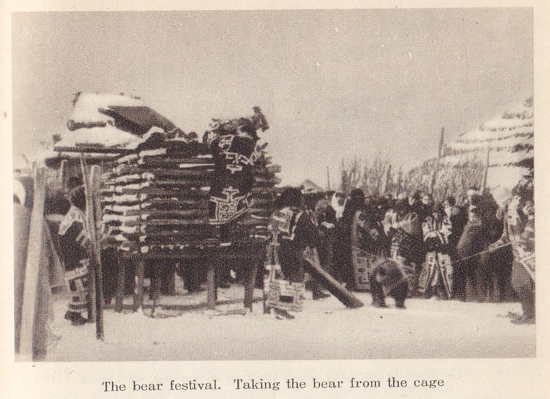 The bear ceremony, most pictures of which I've left out since they involve killing the bear. The author points out a good question. If the bears are gods, then why kill them?