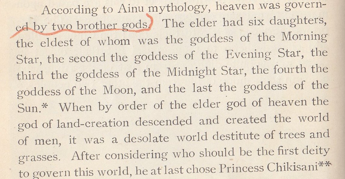 Ainu mythology is next, starting with the creation of life on Earth.