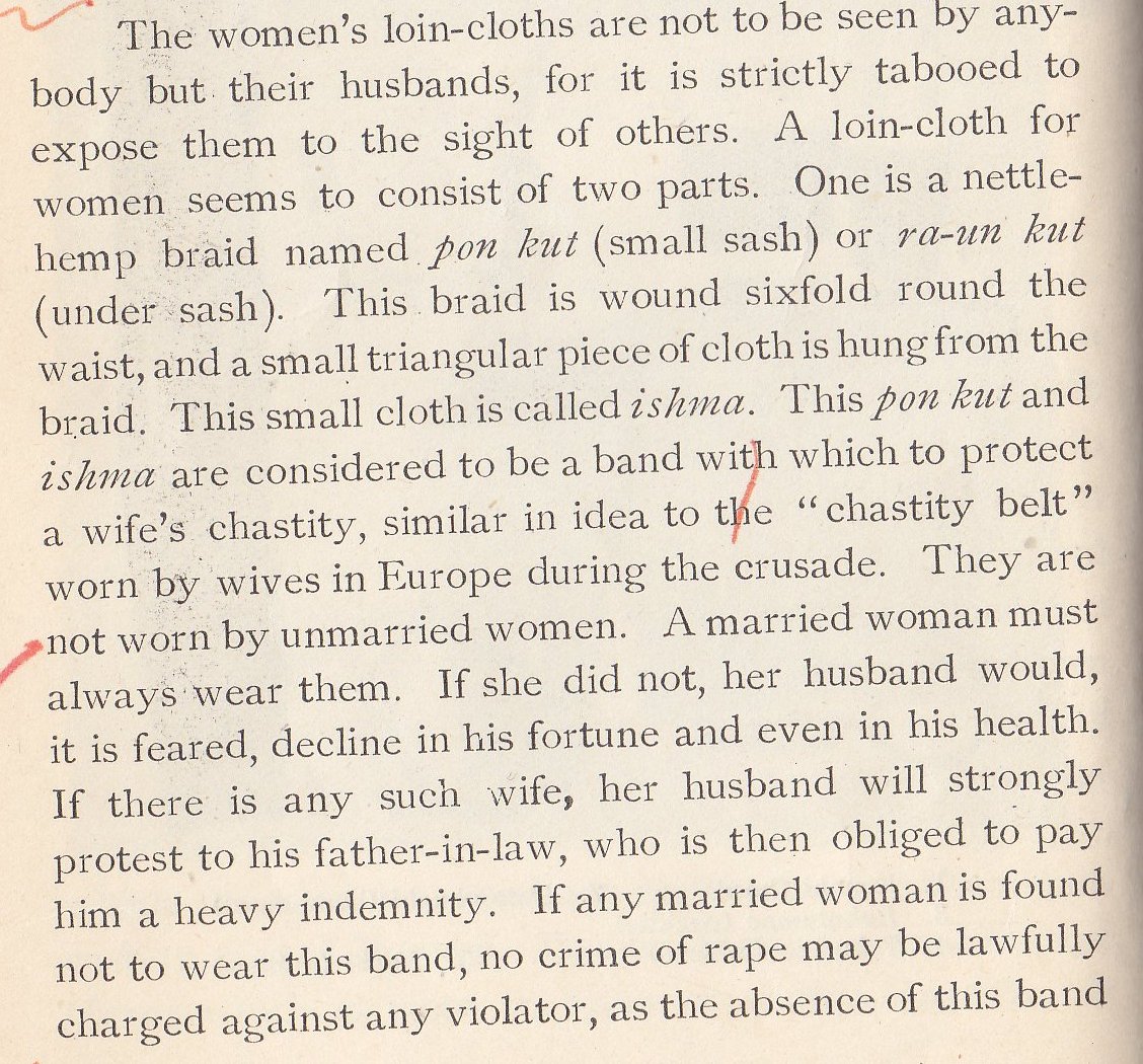 Men wear loincloths like Japanese fishermen, but the women's clothing has a special importance.