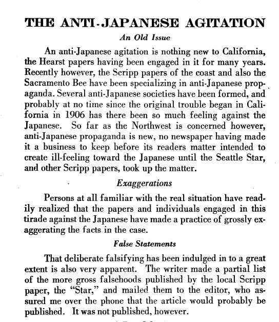 The “agitation” against the Japanese was given a major push by the media. There were people who were anti-Japanese, of course, but the Hearst papers and their sensationalist (and sometimes non-nonsensical) articles really got the ball going. This spread to other papers.