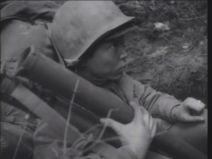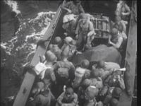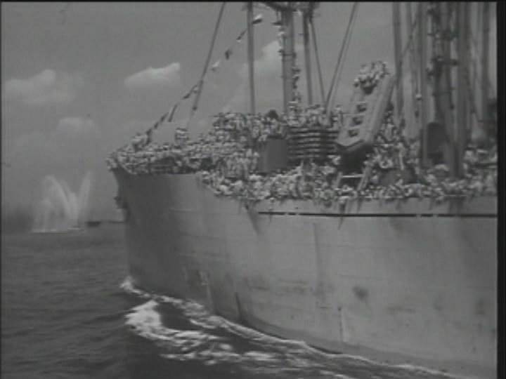 The video then talks about the Nisei in the Pacific in the Military Intelligence Service. One of the things they did was to broadcast over loud speakers in Japanese, trying to get civilians and soldiers to surrender. They also translated captured documents and interrogated prisoners.