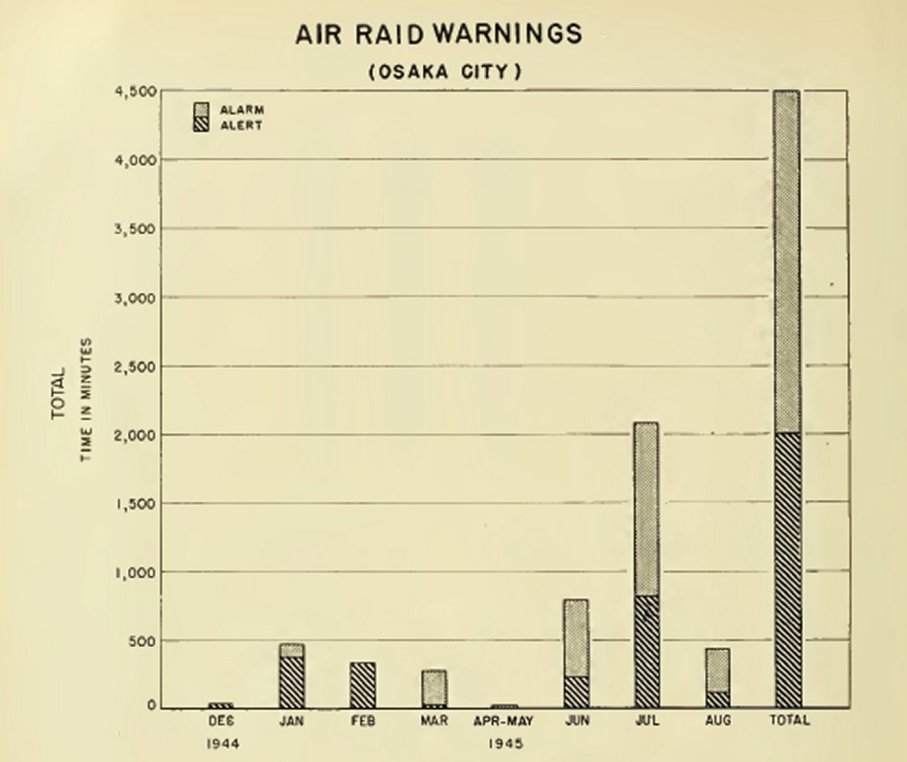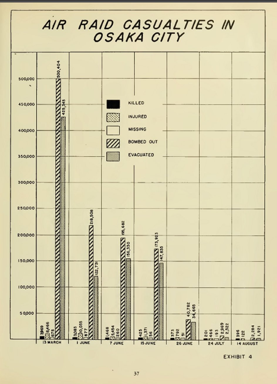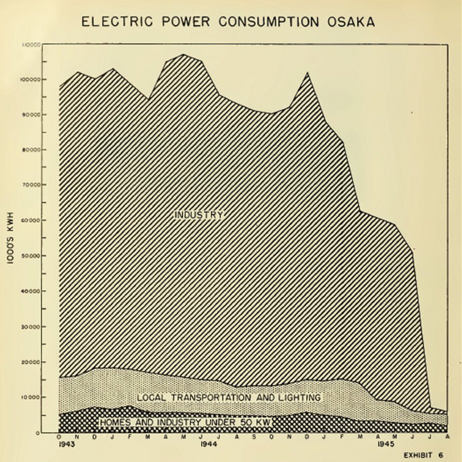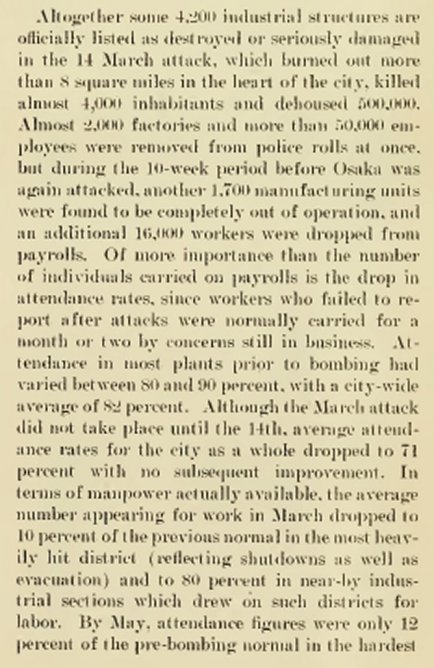 What is the result of all these charts? It's obvious that Osaka was severely damaged by the air attacks, so much so that their industrial base almost disappeared.