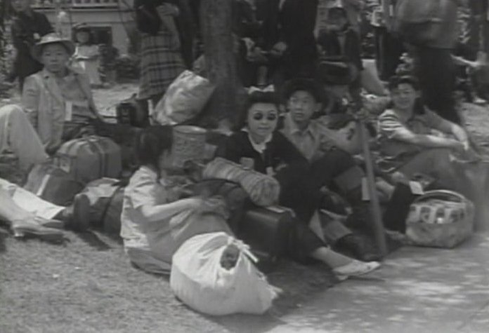 This is a scene of the persons of Japanese ancestry being removed from the West Coast. There is a woman talking, and I can't understand the beginning of her sentence, which then leads into something like “each generation beginning to comprehend what they went through. I don't know if I could have been as tough.”