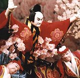 Japanese audiences, though, are not bothered by the puppeteers. The performances themselves can be very elaborate, the movement of the puppets very precise even to the point of simulating running. In one part of one play, for example, one puppet gets into a sword fight with two others splitting the skull of one open.