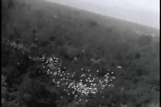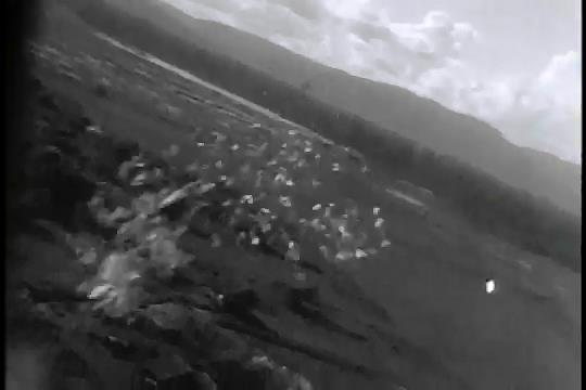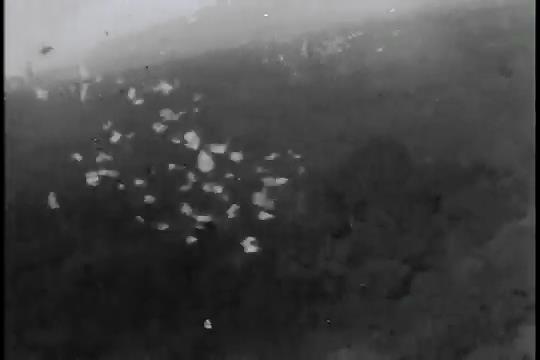 No narration, no sound. Leaflets dropped over Burma. My guess is they were aimed at Japanese soldiers, encouraging them to surrender.