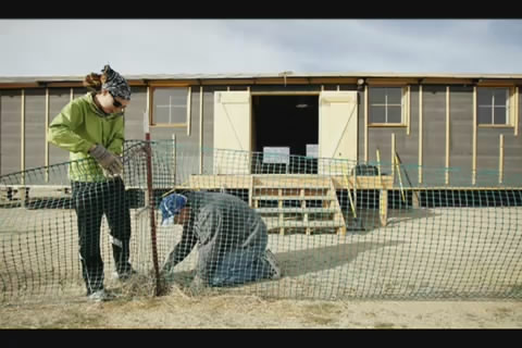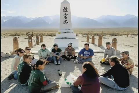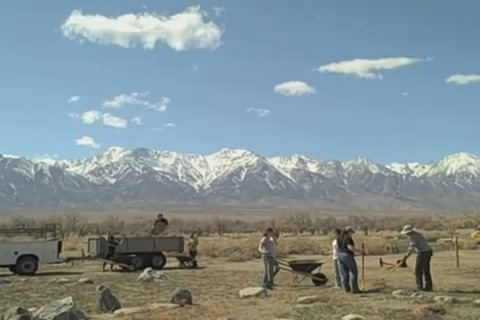 A group of college students come to the Manzanar camp and help clear off some brush to help try and keep the camp site in decent shape.