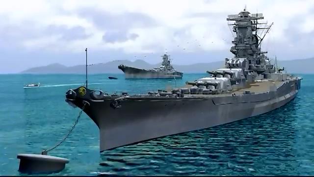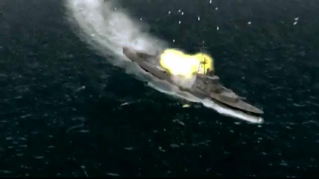 The Yamato launches some of its larger shells at some American PBM planes shadowing the Japanese fleet.
