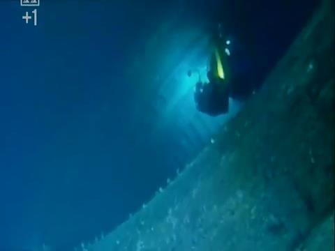 1200 feet down they find the Imperial Crest, indicating that the ship is the Yamato. Then the program goes into the history of battleships.