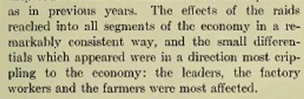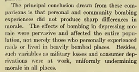 The effects of the bombing resulted in lower morale all around which, again, is a little surprising since I would have thought it would have been a more major difference between those actually bombed and those not.