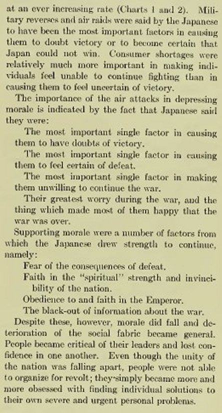 Indicates how important the air raids were. Think about this for a minute. Japan had never been defeated in a war. They were sure that they would defeat anyone they fought. They were doing moderately well in China and doing very well on the Southeast Asian islands. Suddenly the enemy was at the door and this was something they could not quite understand.