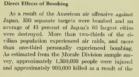 This is related to the fact that some people argue that bombing the cities was killing innocent civilians, but the Japanese war machine was supplemented by things made at homes rather than everything being made in big buildings. The Japanese homes were made mainly out of wood which made them very vulnerable to incendiary devices which led to major firestorms and square miles of cities being destroyed.