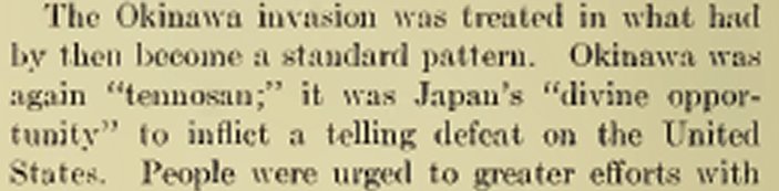 The Okinawa invasion was treated as a critical stage of the war. There were too many of this kind of description, though.