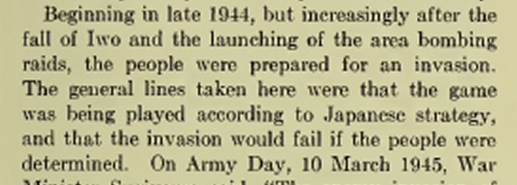 The potential invasion of Japan itself was put out as a part of Japanese strategy.