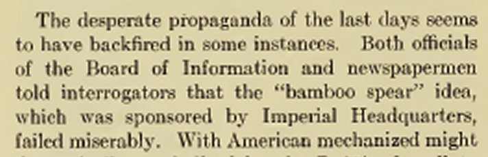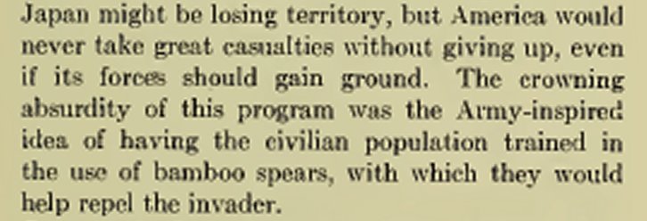 The idea that civilians would defend themselves with bamboo spears did not go over well.