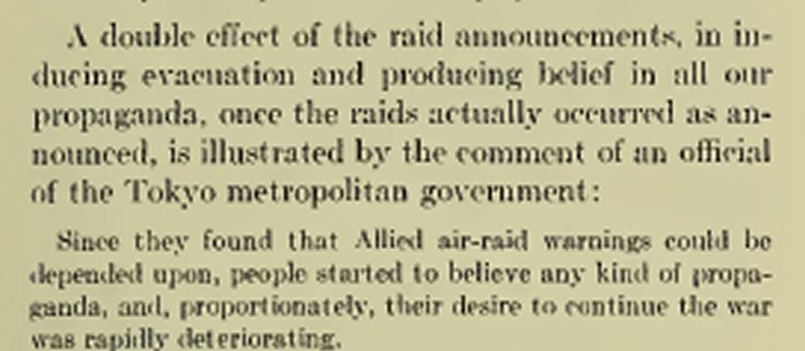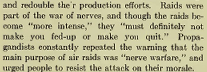 The raids should be strengthening the spirit of the civilians, at least according to the Japanese government.