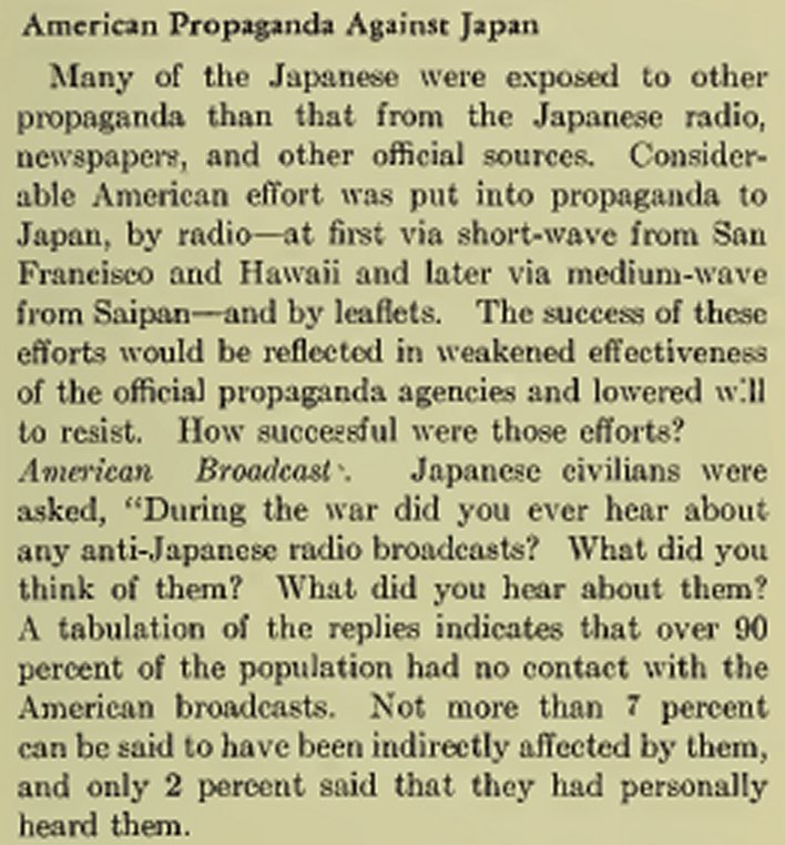 The United States did radio propaganda aimed at Japan but it wasn't successful.