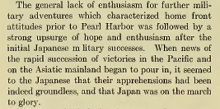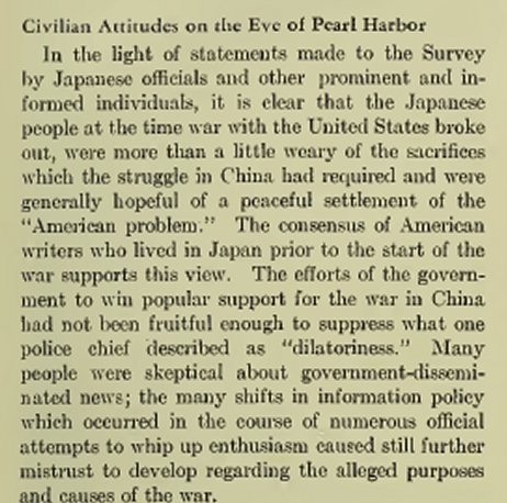 An important is that the Japanese people entered the war with the United States without much enthusiasm. That's not a good way to start a war.