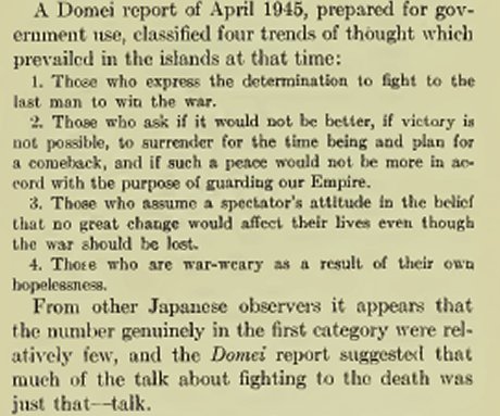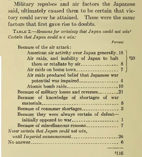Some 26% still thought Japan would not lose the war.