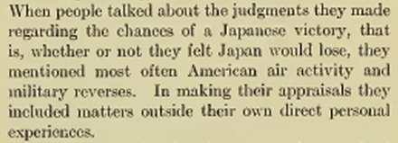 The military situation and air attacks were the two main reasons for Japanese doubt of ultimate victory.