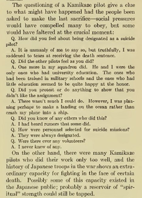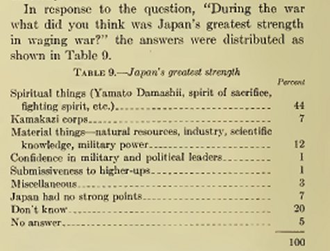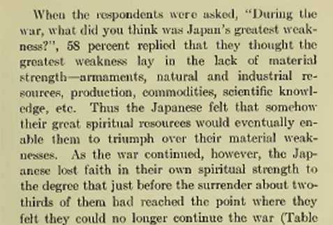 What the Japanese felt was their greatest strength. Spiritual strength was number one.