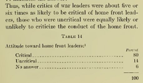 More on attitude towards home front leadership.
